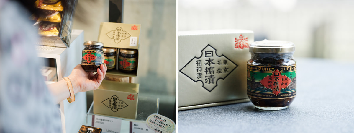 コンパクトながらも3面ガラス張りで開放感のある店内には、国分が扱う自慢の食品がいっぱい。最近では“そのままおつまみになる缶詰”がキャッチフレーズの「缶つま」シリーズが人気で、私も実は自宅で愛用しています。ただ手土産用に一番にご紹介したいのは、「日本橋漬」。現在は瓶詰めですが、初めて購入した際は、同様のデザインの缶詰でした。明治時代に商標登録したという桐印が入った、日本橋を描いたオリジナル画がなんともクラシカルで素敵です。中身は甘ったるさを排した大人の福神漬けといえるもの。カレーの付け合わせというよりは、お酒のおつまみや漬物としてご飯のお供に最適な、醤油の効いたお味です。