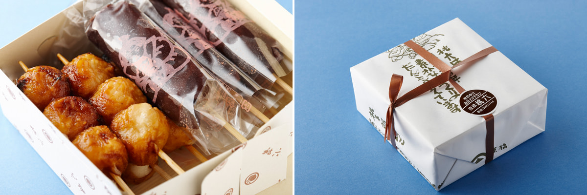 また、餅菓子屋としてスタートしただけに、団子や大福のおいしさも見逃せません。上新粉だけを使って杵と臼でついた「桃太郎だんご」は、シコシコとした歯ごたえとお米そのものの味を感じられる逸品。上品な甘さのこしあんと、少し焼き目のついた醤油だれの2種類があり、とくに醤油の団子は辛党にも喜ばれるキリッとしたおいしさです。