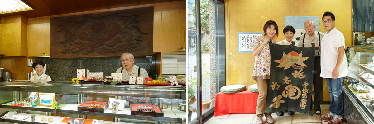 そんな条件をすべて満たすのが、ここ「桃六(ももろく)」。老舗が多い京橋のなかでも古参の明治2年(1869年)の創業です。ショーケースの後ろに飾られた、ケヤキの一枚板に彫られた桃太郎の看板は、関東大震災の火災からも東京大空襲の戦火からも逃れた、桃六の歴史を物語る宝物。店主の林登美雄さんのお母様である房子さんに見せていただいた、桃六に代々伝わる創業時の幟からも、このお店が歩んできた時の流れがうかがえます。