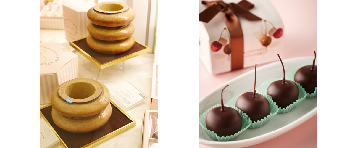 写真右:キルシュヴァッサーという蒸留酒にじっくり漬け込んだチェリーと、とろっとしたフォンダンをビターなチョコレートでコーティングしたチェリーボンボンは、グマイナーのスペシャリテ。お酒に弱い永浜さんの顔がすぐに真っ赤になるほど、キルシュヴァッサーもたっぷり。バレンタインデーの贈り物に大人気とか。2個入り972円、4個入り1944円、6個入り2916円。賞味期限10日。