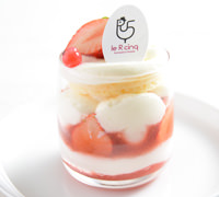 「マリエ」は森のイチゴと呼ばれるフレーズ・デ・ボワとピスタチオのムースを合わせた可憐なお菓子。フレーズ・デ・ボワは、気品あるフルーツとしてフランス人がもっとも珍重するフルーツである。ハーブの気配のある比較的穏やかな酸を、ピスタチオのムースが優しく包む。芯の強さとたおやかさと……マリエ(結婚)。ショップで陣頭指揮に立つマダムへの永遠の結婚プレゼント。ぼくが言っても詮無いがピッタリだ。