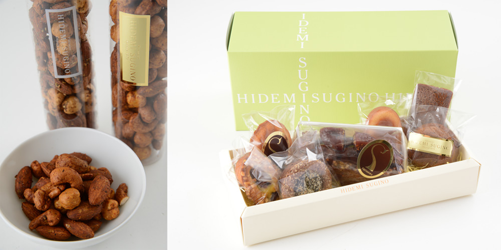 最後は新作「イデミ スギノ」唯一のサレ(塩味)商品。アーモンド、ヘーゼルナッツ、カシューナッツ、三種のナッツに、五種のハーブをまぶした「エルブ ド プロヴァンス」。五種のスパイスをまぶした「エピス ド バスケーズ」。これらは、世界一オシャレな天下無敵の「乾きもの」である。