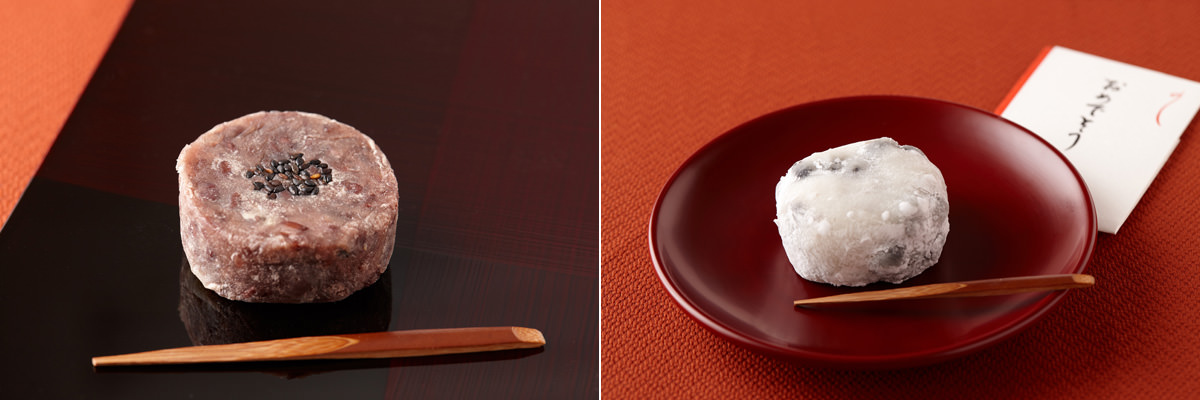 写真左:江戸菓子“名代金鍔”(1個227円)と“黒豆大福”(1個227円)を詰め合わせて。写真の、手焼きの生金鍔は日持ちがしないため、日本橋本店と日本橋三越店(1個249円)だけで買い求めることができる。同じ個包装タイプもある。