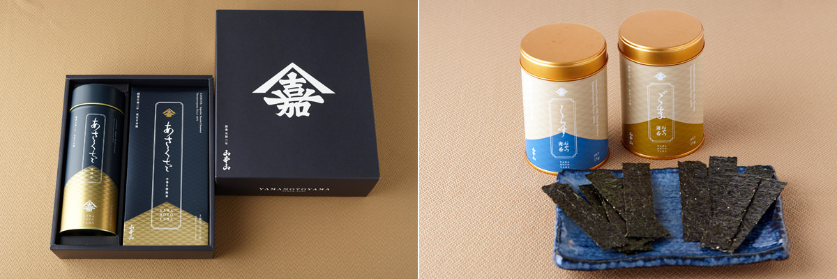 写真左:風味豊かな“あさくさ”の「海苔詰合せ 焼海苔 手巻き焼海苔」5400円。