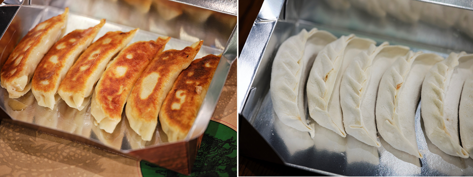 左)「できるだけ焼きたてを食べてほしい」と松島さん。生の餃子は11月~3月のみ持ち帰り可