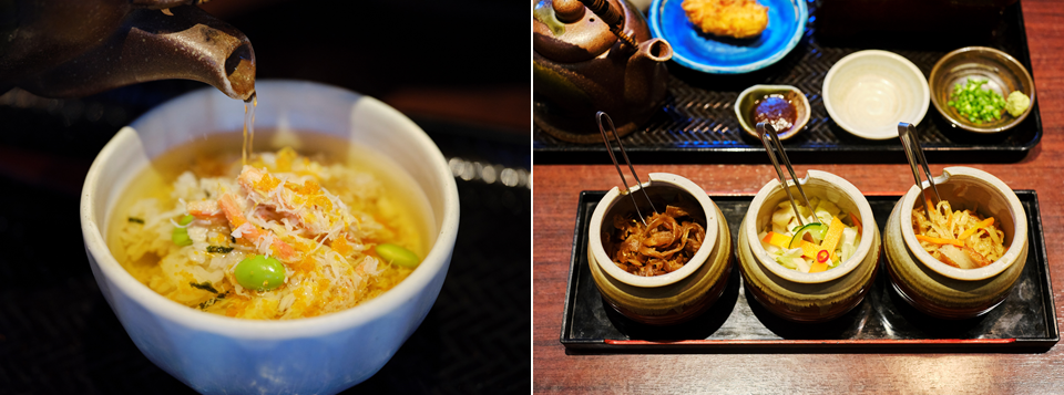左)かにの甘みとだしの塩加減とのコントラストが、味に変化をもたらす