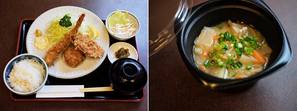右)現在、テイクアウトメニューとして準備中の豚汁。とんかつ弁当とあわせて税込1000円で発売予定