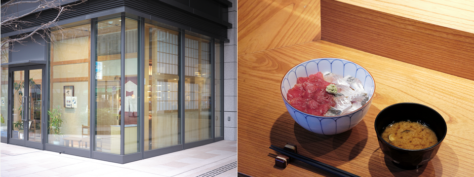 ふだんは昼になると、うまい魚を求めて、近隣で働く会社員が店の前に行列をつくるほど人気だ。煮魚定食や焼き魚定食も評判だが、多くの人のお目当ては鉄火、アジ、サバ、カンパチ、カツオから2種類を選んで組み合わせることができるハーフ丼。きちんと仕事がしてある新鮮なネタもさることながら、硬めに炊き、赤酢をキリッときかせた酢飯が、寿司屋ならではの味わいだ。