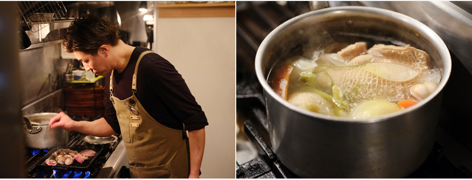 左)「内臓料理は素材の鮮度と火入れ具合が重要」と藤岡さん