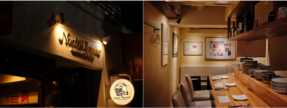 昭和なビルやマンションが残り、古くからある店やシャッターを下ろした店に混じって、ポツポツと個性的な店が出現している新富町。今年7月に10周年を迎える、豚の内蔵料理が得意なイタリアン「Nodo Rosso(ノードロッソ)」はそんな店の一つだ。隣にある昔ながらのスナックを横目にガラス戸を開けると、手前にカウンター、奥にテーブルが3席ある。10数人ほどでいっぱいになるこぢんまりとした空間に、昼ともなると次々とお客が入ってくる。そのほとんどが一人客だ。