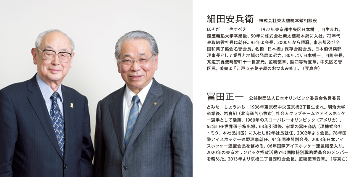 どちらにも共通するのは、自店だけでなく、まちの活性化にも尽力する姿勢だ。日本橋・京橋の顔といえる2人が、未来に向けてまちにエールを送る。