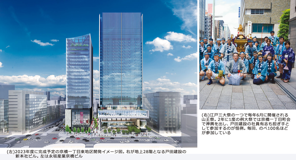 そして今、戸田建設は新たな歴史を刻もうとしている。それが京橋一丁目東地区で、今年からスタートする開発計画だ。戸田建設本社ビルと隣接する永坂産業京橋ビルの建て替えに伴い、街区全体の開発を行う。