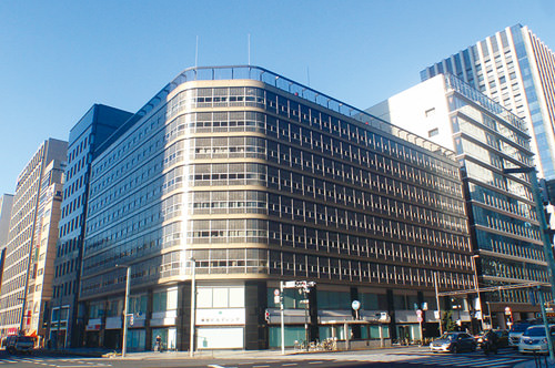 日本橋交差点のビルは個性的な外観がランドマークとなっている