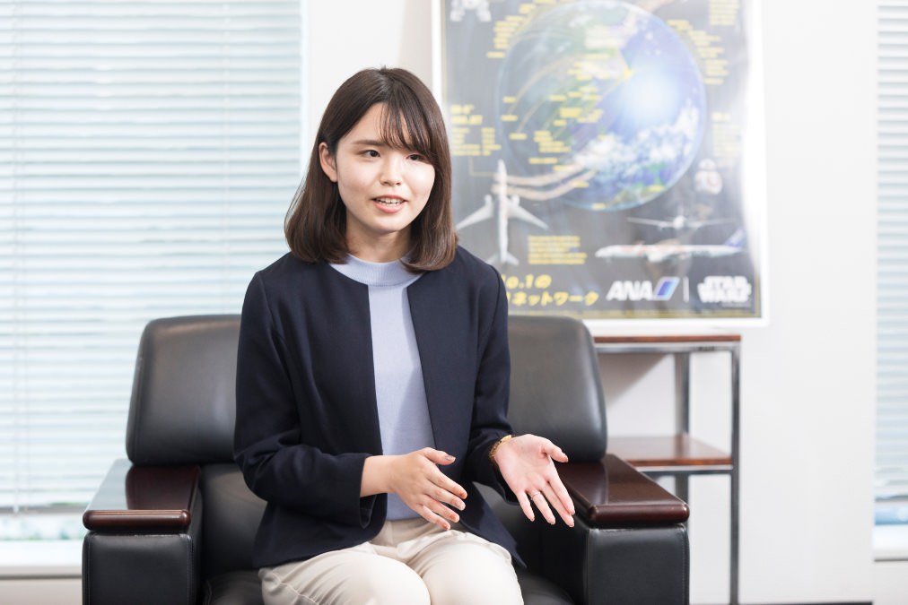 ANAセールス 旅行事業本部 コミュニケーション事業部 マーケットコミュニケーション部 販売企画課/岡安ちさとさん。「お客様との会話をもとに、今後もサービスを磨き上げていきたい」という