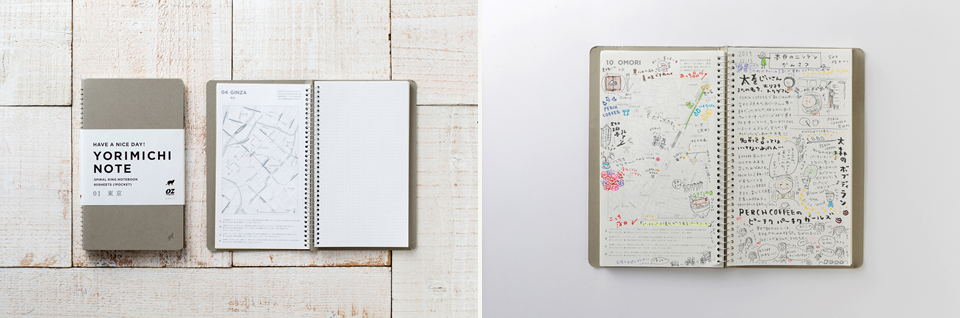 トラベラーズカンパニーとのコラボで生まれた「よりみちノート」。写真は「よりみちノート01 東京」で、その他にも〈02 鎌倉・湘南〉〈03 京都〉〈04 47都道府県〉などのバリエーションがある。価格は各1,200円(税込)