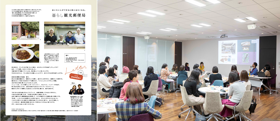 左)観光名所とはひと味違う“地域で愛される場所”を、地元の人に紹介してもらう連載ページ「暮らし観光郵便局」