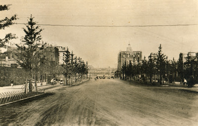 (3)「京橋区中橋広小路より東京駅裏口方面を望む」