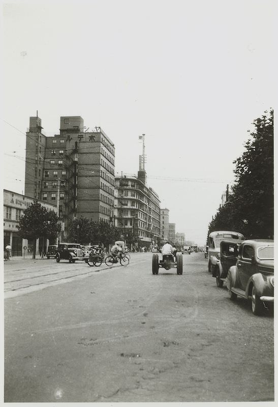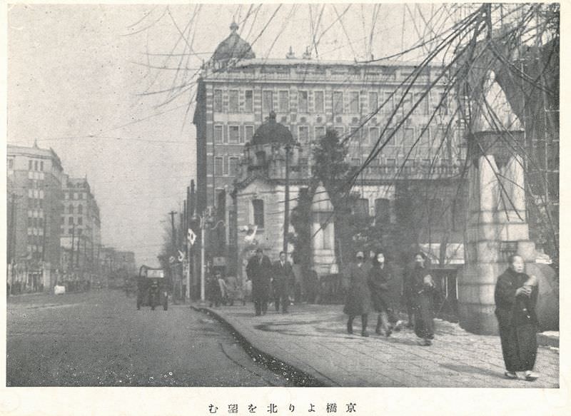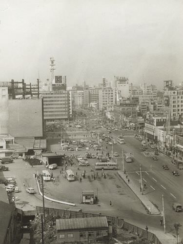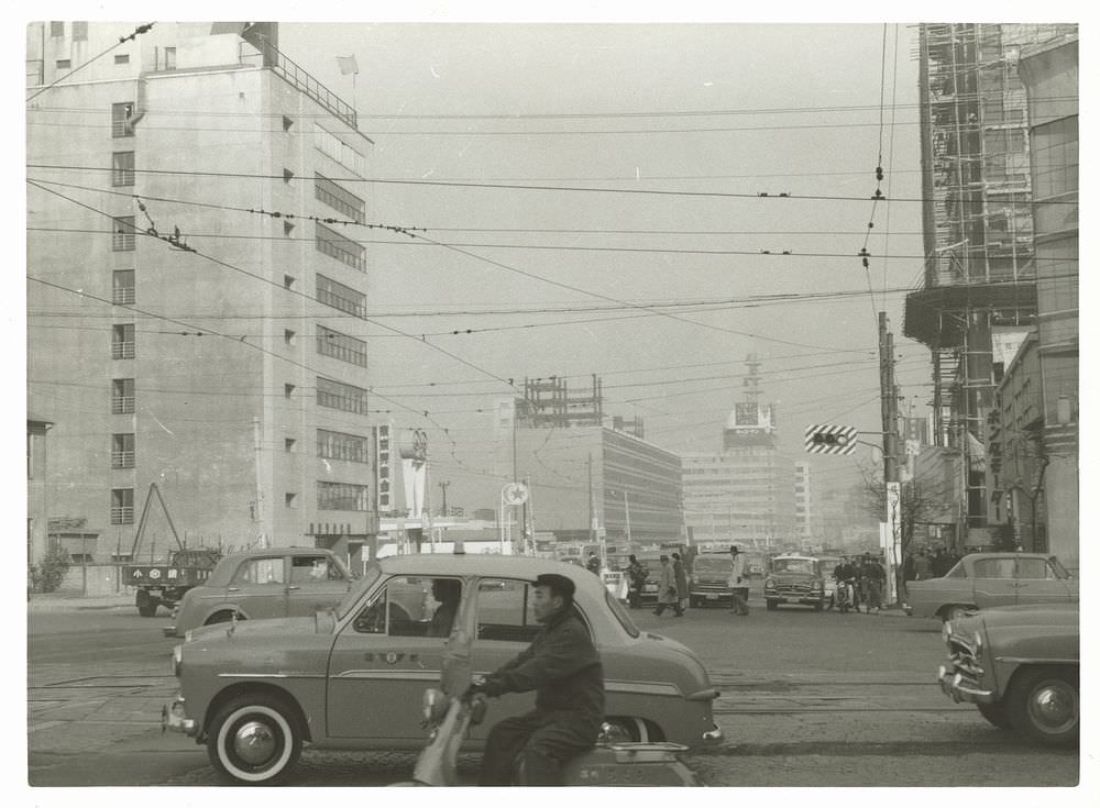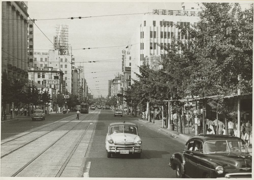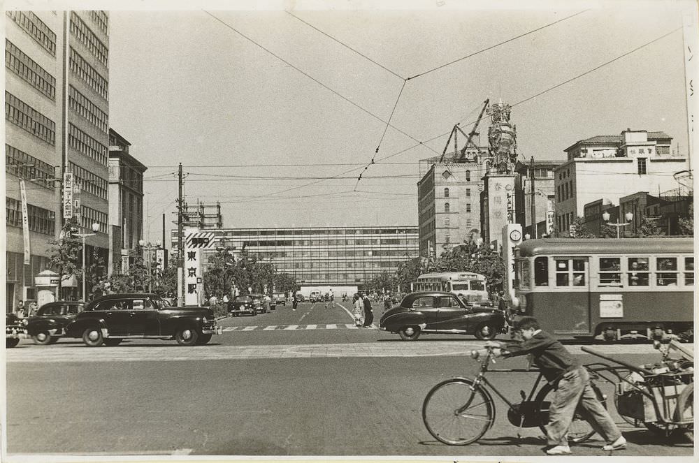 (8)「八重洲通りから東京駅を望む」(昭和32年)