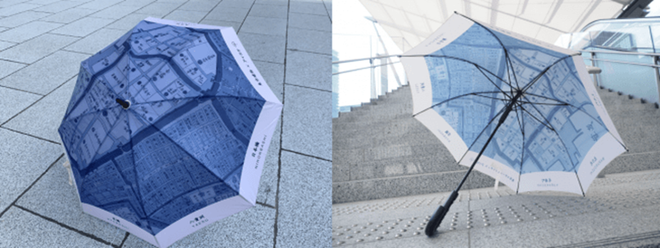 日本橋の地図専門店「ぶよお堂」の提供。雨の日でもまち歩き気分を上げてくれそうなこちらの傘は、