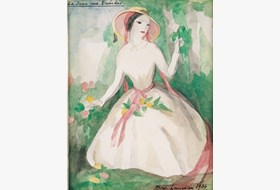 マリー・ローランサン(1883-1956)は、パリのアカデミー・アンベールで学び、キュビスムの画家として活動をはじめました。1914年にドイツ人男爵と結婚、ドイツ国籍となったため、第一次世界大戦がはじまるとフランス国外への亡命を余儀なくされました。1920年に離婚を決意して、パリに戻ってくると、1921年の個展で成功を収めます。第二次世界大戦勃発後もほとんどパリに暮らし、1956年に72歳で亡くなるまで制作をつづけました。