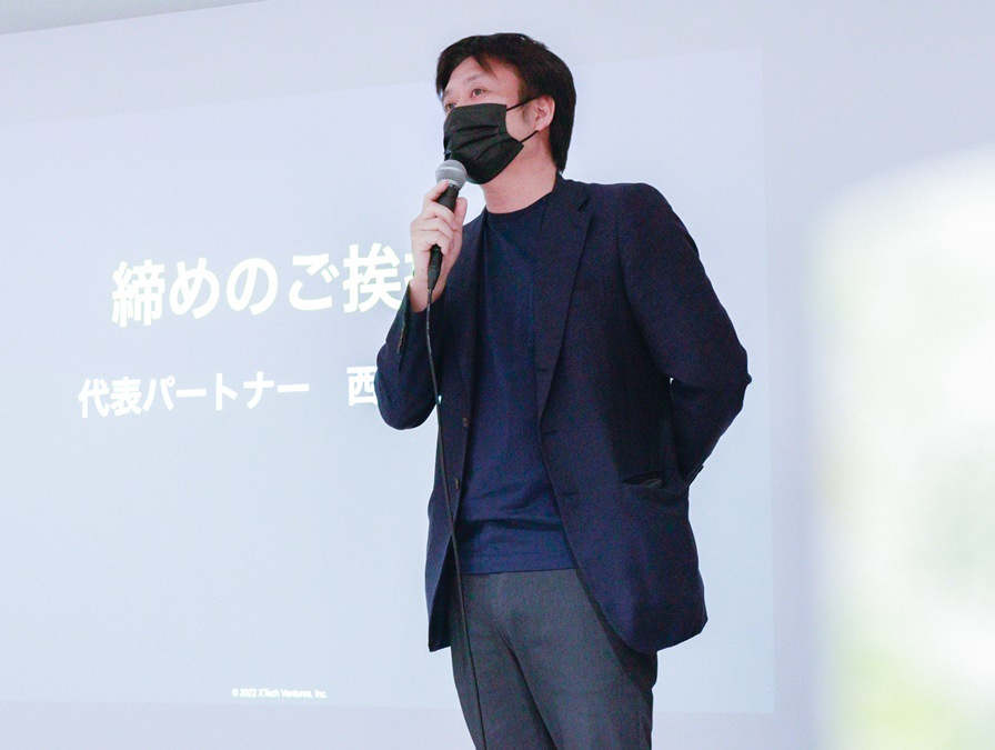 最後は、XTech Ventures代表パートナーの西條晋一氏から締めのあいさつが。西條氏は長年ベンチャーキャピタリストとして業界を見てきた経験から、現在は大企業とスタートアップの垣根が取り払われ、相互に融けあう時代になっていると指摘。同時にVCには、競合他社の間でも活発に情報交換が行われる「横のつながりの強さ」があると述べました。こうした視点をもとに西條氏は「この施設を入り口に、さまざまなVCやスタートアップ、大企業の方々とつながっていってください。わたしたちが提供する場所や情報、ネットワークを使い倒して、みなさんが世界に通用するスタートアップへと成長してゆくことを期待しています」と入居者の方々に激励の言葉を投げかけました。
