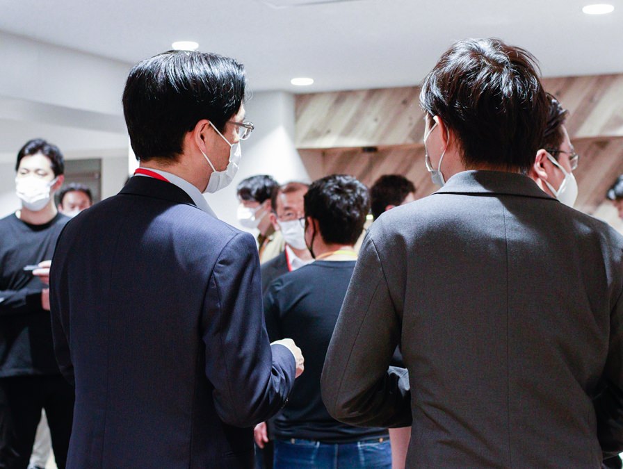 さまざまな領域と関心で展開される各企業の取り組みに会場はますますヒートアップ。絶えず情報交換が行われる賑やかな懇親会となりました。