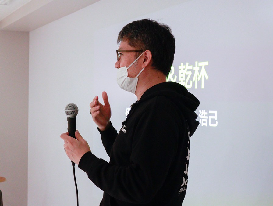 パーティは、XTech Ventures代表パートナーの手嶋浩己氏の乾杯からスタート。会場の熱気を受け、会場を見渡しながら、メルカリ創業者の山田進太郎氏やBASE創業者の鶴岡裕太氏が集っていた伝説的なシェアオフィスVC「East Ventures」を思い起こす、と語りました。「みなさんで一緒に、この場所から八重洲の街を盛り上げて、世界にはばたくようなスタートアップをどんどん育てていきましょう」そんな言葉とともに、一斉にグラスが掲げられました。