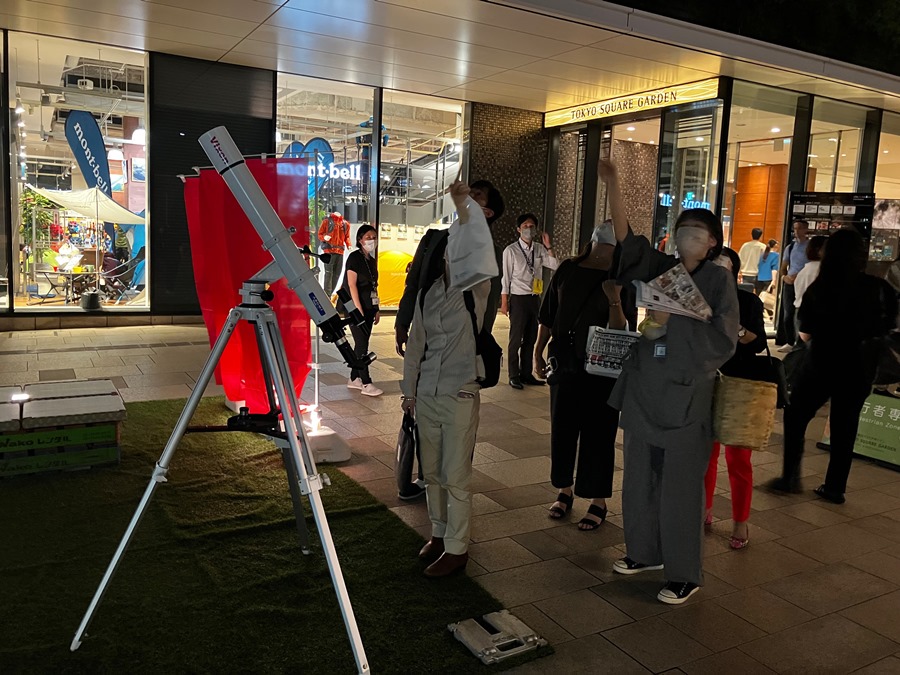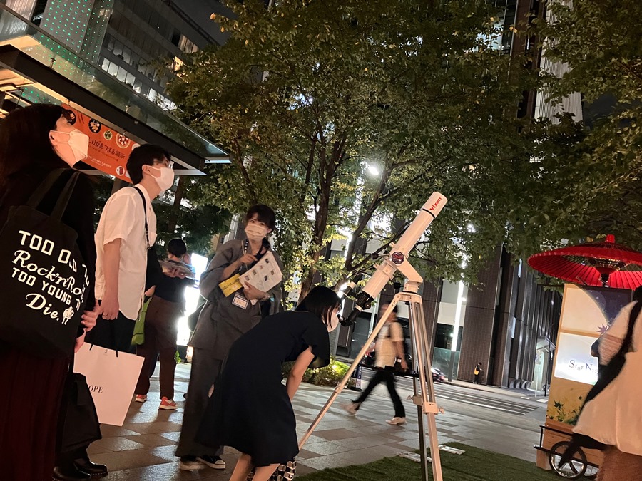 江戸時代の町民たちは、特定の月齢の日に仲間が集まり、月の出を待つ時間を楽しんだそう。そんな月待ち気分を味わえる無料イベントとして開催された本イベント。会場は、自然とのふれあいの機会を作りにくい都心のオフィスビルながら、この日ばかりは、多くの人が秋の夜長を、星空を見て満喫しました。