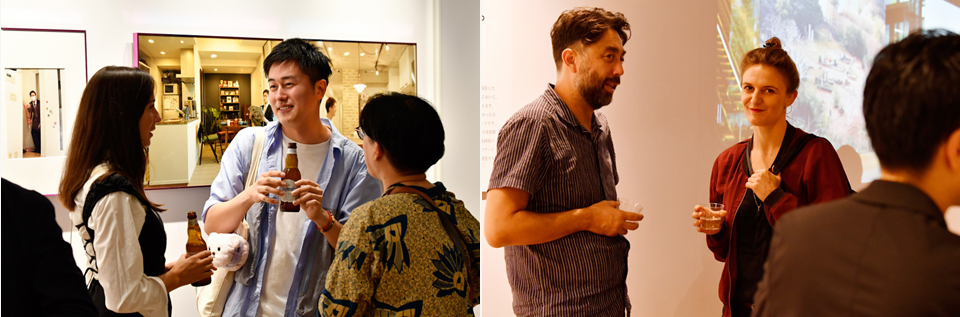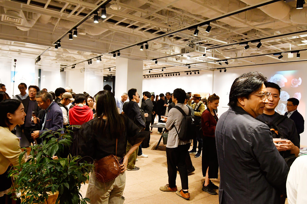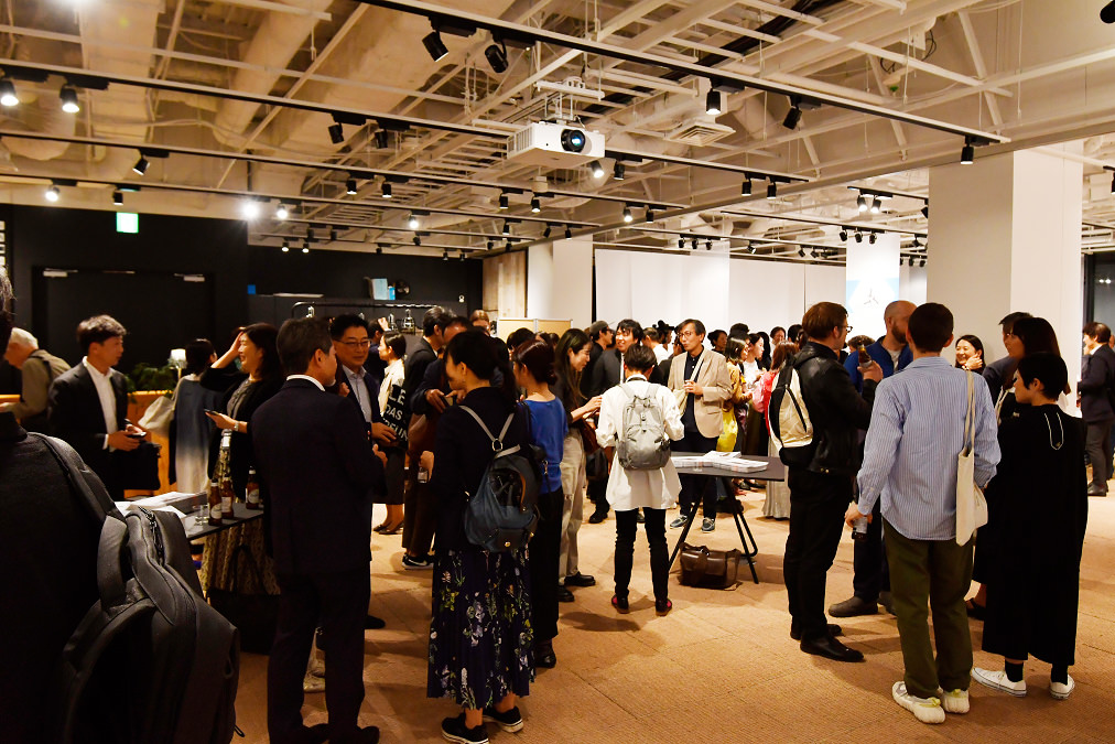 その開幕を翌日に控えた10月6日、展示会場のひとつである東京スクエアガーデンにて、出展作家、関係者、メディアが参加した交流会が開催されました。当日は海外の作家も来日し、和やかな雰囲気で交流を深めました。