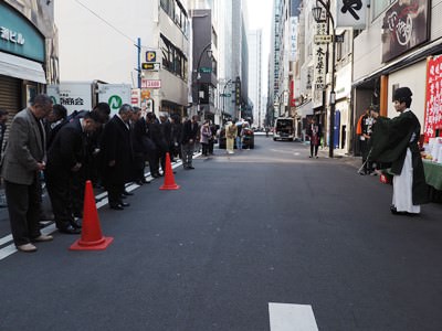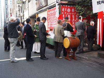 日枝神社から神職を招き、神事が行われ、地元町会の方や取引先などが参列し、