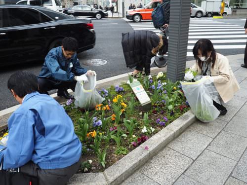 京橋~日本橋本町にかけての中央通りには、四季を彩る花壇が設置されていて、