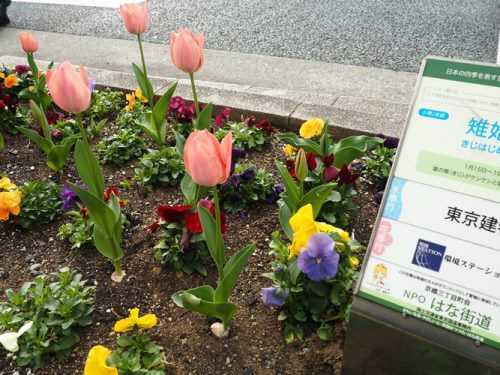 現在は色とりどりの「パンジー」と、満開が待ち望まれる「チューリップ」が中央通りに彩りと潤いを与えています。