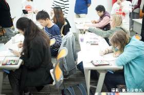 ゲストが日本で訪れたことのある地、訪れたい風景などをそれぞれの団扇の両面に描きました。スマートフォンで画像を検索しつつ描く人や、頭に思い描いたものを想像力を膨らませながらデザインする人など、出来上がった団扇はまさに十人十色でしたが、いずれも満足そうな笑顔で団扇を持ち帰られたのが印象的でした。