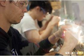 職人と同じ道具を使って、自分の手で江戸切子の紋様を施すワークショップ。ショーケースに並んだ商品を参考に、イメージを深めます。硝子の構造(透明と色つき硝子の2層構造)や、持ち方、機械への当て方など、アドバイスを聞きながら真剣に作業を進め、世界に1つだけのぐい呑みが完成。ゲストの笑顔は硝子に負けないくらいキラキラ輝いていました。