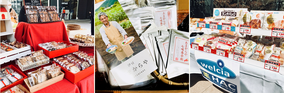 最後に番外編として、「ハックドラッグ東京スクエアガーデン店」(写真右下)のブースをご紹介。人気のランチパックなどの袋パンやペットボトル飲料などがアート&クラフト市限定価格にて提供されました。会場全体が来場者を歓迎してくれているようでうれしいですね。