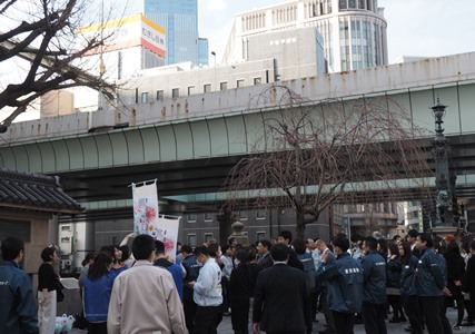 心地よくうっすら汗を浮かべた参加者の皆さんが日本橋のたもとにある はなの広場で集合。