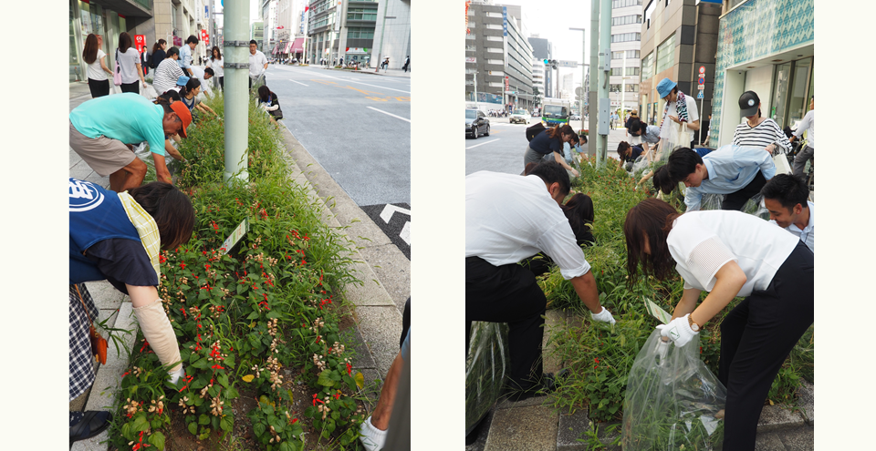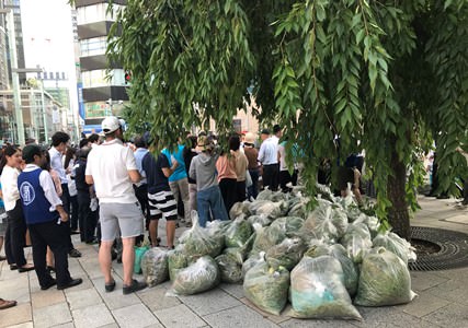 通常1時間かけて京橋三丁目、日本橋本町四丁目の両サイドから実施されるクリーンウォークですが、