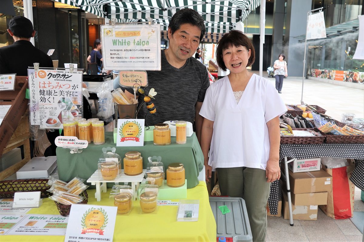 今回、特に目を惹いた商品は、8月3日(金)発表の「第4回ハニー・オブ・ザ・イヤー」(一般社団法人日本はちみつマイスター協会主催)で栄えある海外産部門最優秀賞に輝いた、受賞ほやほやの生はちみつ「white taiga(ホワイトタイガ)」。ミツバチが生息できる北限の地・ロシアの「タイガの森」のリンデン(菩提樹)の花から採取した希少なハチミツだそうで、華やかで濃厚でありながらもさっぱりとした味わいが特徴。瓶以外にも、小分け包装されているスティックタイプもあり、職場のデスクにも忍ばせておけますね。出店者さんは、その名も「white taiga」さん。宮崎県産の新鮮な旬野菜も扱っています。