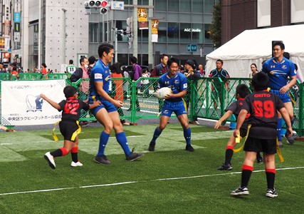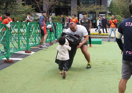 ジャパンラグビートップリーグ選手とのタグラグビーや綱引き体験イベントを開催。