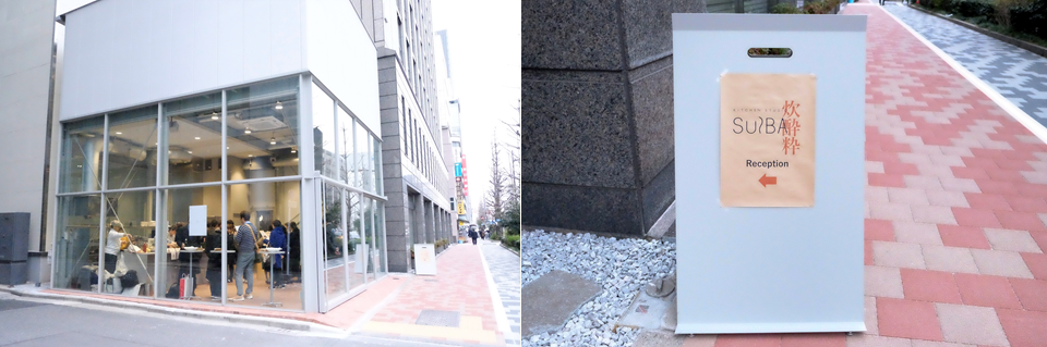 京橋駅徒歩5分以内、東京駅、日本橋駅、八丁堀駅徒歩10分以内とアクセス抜群の立地に、今年2月にオープンしたばかりの新スポットですが、道行く人も思わず「何のお店?」と立ち止まるほどの存在感。〈SUIBA〉という名称には、「炊事場」と「酔いしれる場」という意味合いと、江戸の中心地として栄えた“京橋”にちなんで江戸の価値観である「粋」へのオマージュが込められているとか。