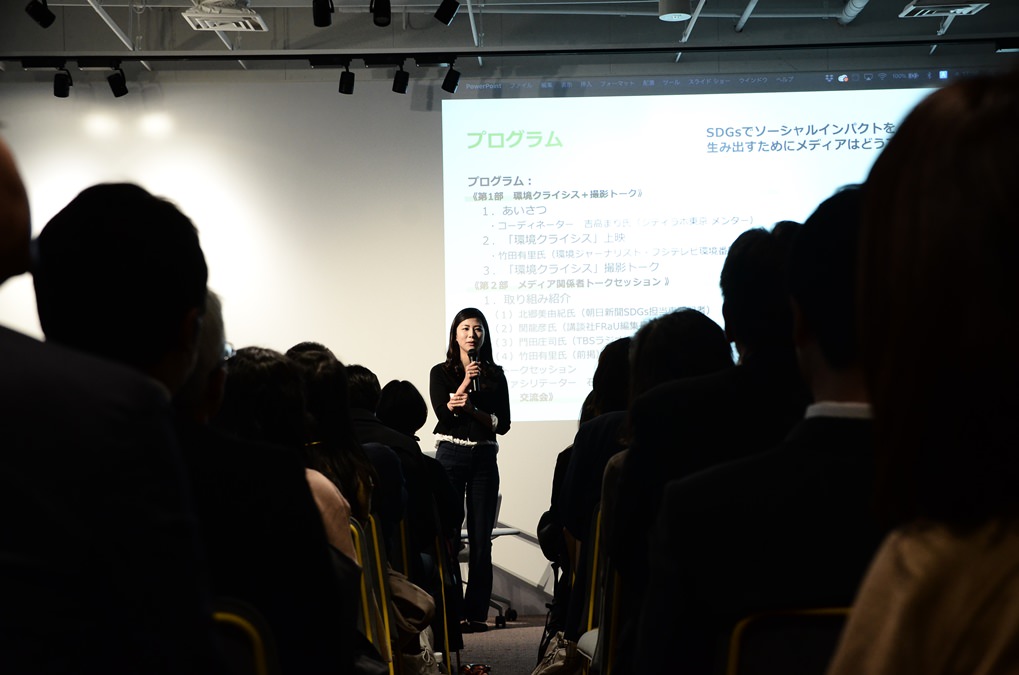 「シティラボ東京」のメンターであり、環境ビジネスやESG投資の専門家である吉高まり氏がコーディネーターを務める『シティラボサロン01 SDGsでソーシャルインパクトを生み出すためにメディアはどうする?』。その第一部では、フジテレビで放送されたドキュメンタリー番組『環境クライシス』の上映が行われました。