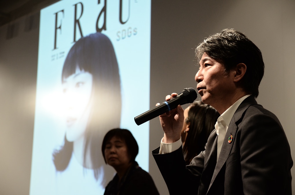 続いて登壇したのは、講談社『FRaU』編集長の関龍彦氏。2019年1月号で国内女性誌として初めて一冊丸ごとSDGsを特集したことで話題となった同誌ですが、関氏はSDGsをテーマに据えた理由を「日本のSDGsの認知率は14.8%と低く、特に『FRaU』の読者である若い女性ではその傾向が顕著。だからこそトライする価値があった」と話します。