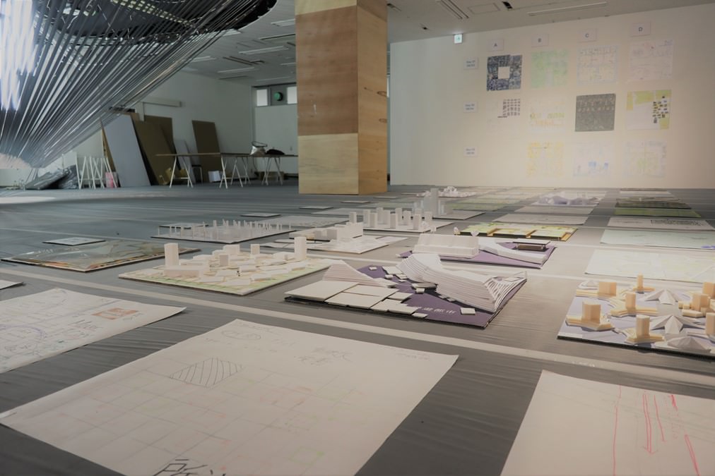 会場の床や壁は、議論のプロセスが分かるスケッチや模型、年表等で埋め尽くされている