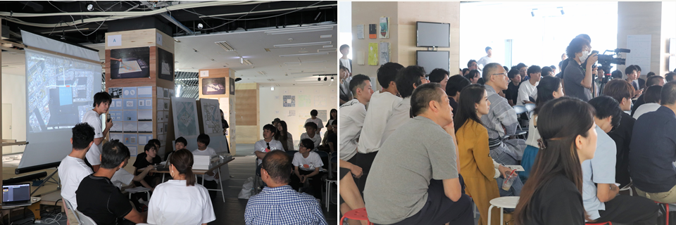 最終日にはひとつに統合したプランを発表。ゲストを招いて批評し合う公開討論会が行われた