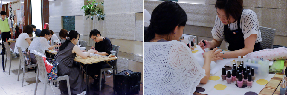 同僚から話を聞いて訪れたという人にお話を伺ってみると、「普段忙しくなかなかネイルをする時間が取れないので、短い時間でネイルしてもらえるのはありがたいです」と嬉しそうにネイルを見せてくれました。