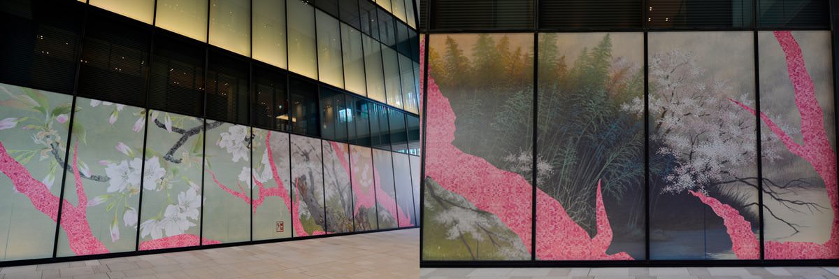 「日本画7人展~SAKURA FES at TOKYO SQUARE GARDEN」と題された本展。期待の若手日本画家7名による“桜”をテーマにした作品全9点が、誰もが自由に行き交うことができる通路の両側に大胆に貼り出されており、まるで日本画の中に入り込んだような、稀有な体験をすることができました。