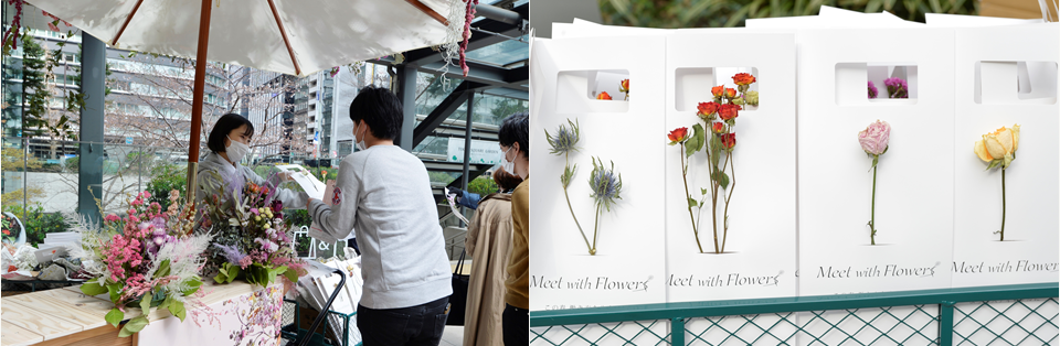 日本橋周辺エリアには、江戸時代より城下町として栄えてきた長い歴史があります。そこで働く人や暮らす人が花を見、手にして、交流する光景は、たとえ時代や街並みが変わっても、変わらない大切な何かがあることを教えてくれているようでした。