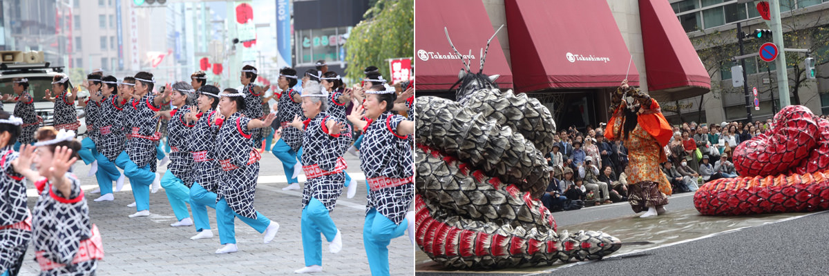地元・官公署団体のオープニングパレードから始まり、東京だけでなく全国各地の踊りが舞う諸国往来パレード。