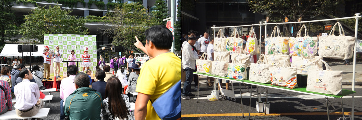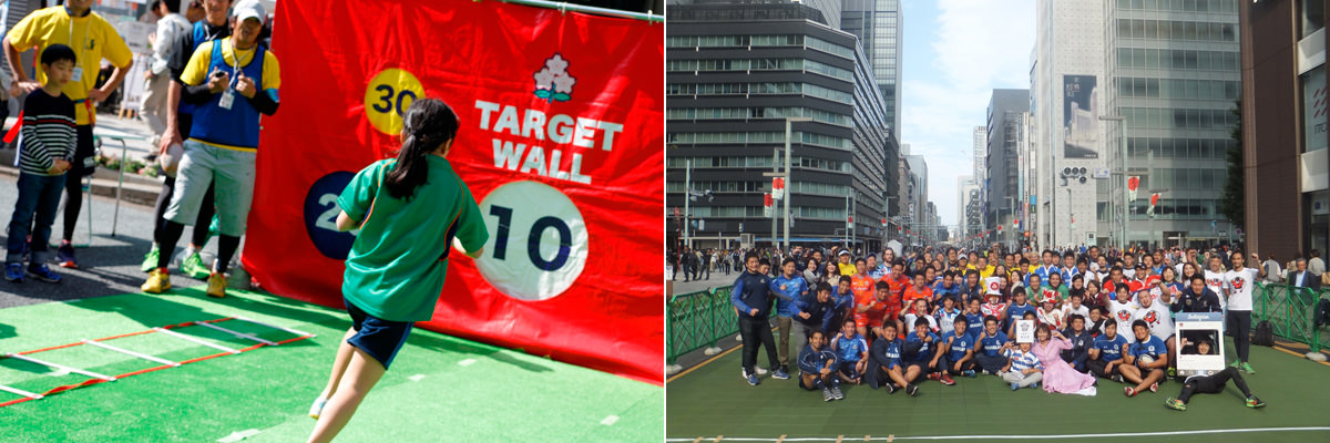 京橋エリアでは、被災地を応援する「ラグビーチャリティーフェスティバル」を開催。