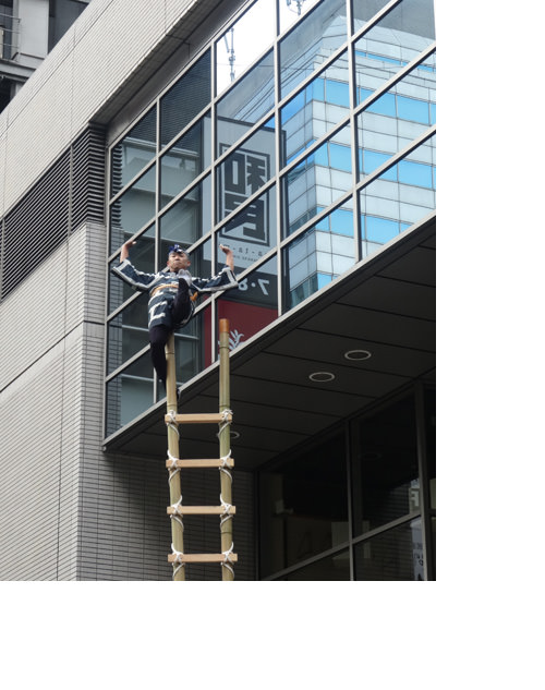 ステージでは、尺八や和太鼓の演奏、そして、江戸消防記念会による木遣りや梯子乗りもあり、
